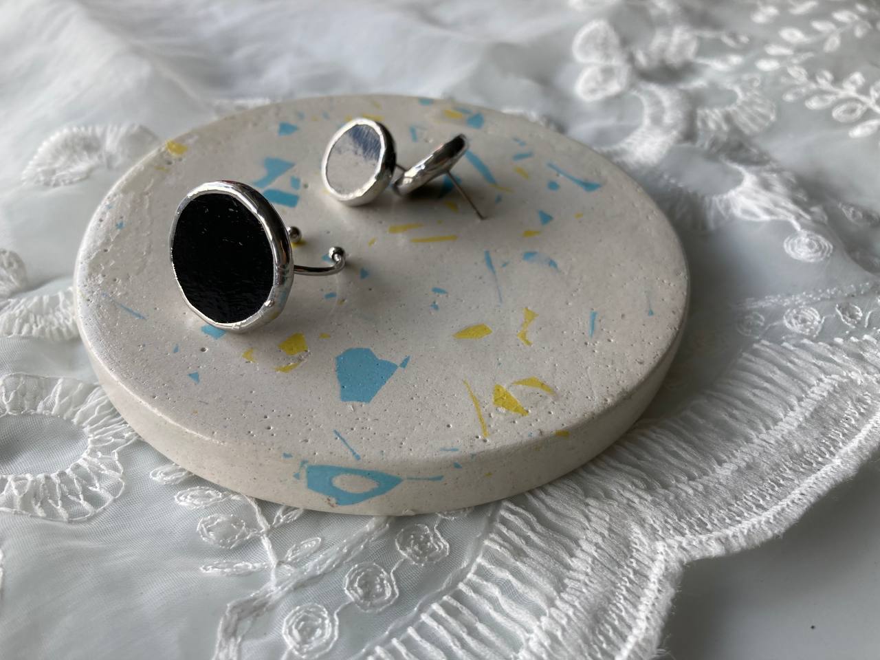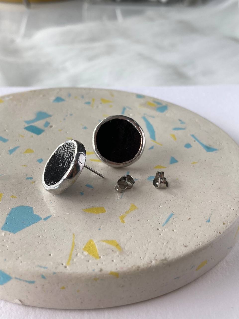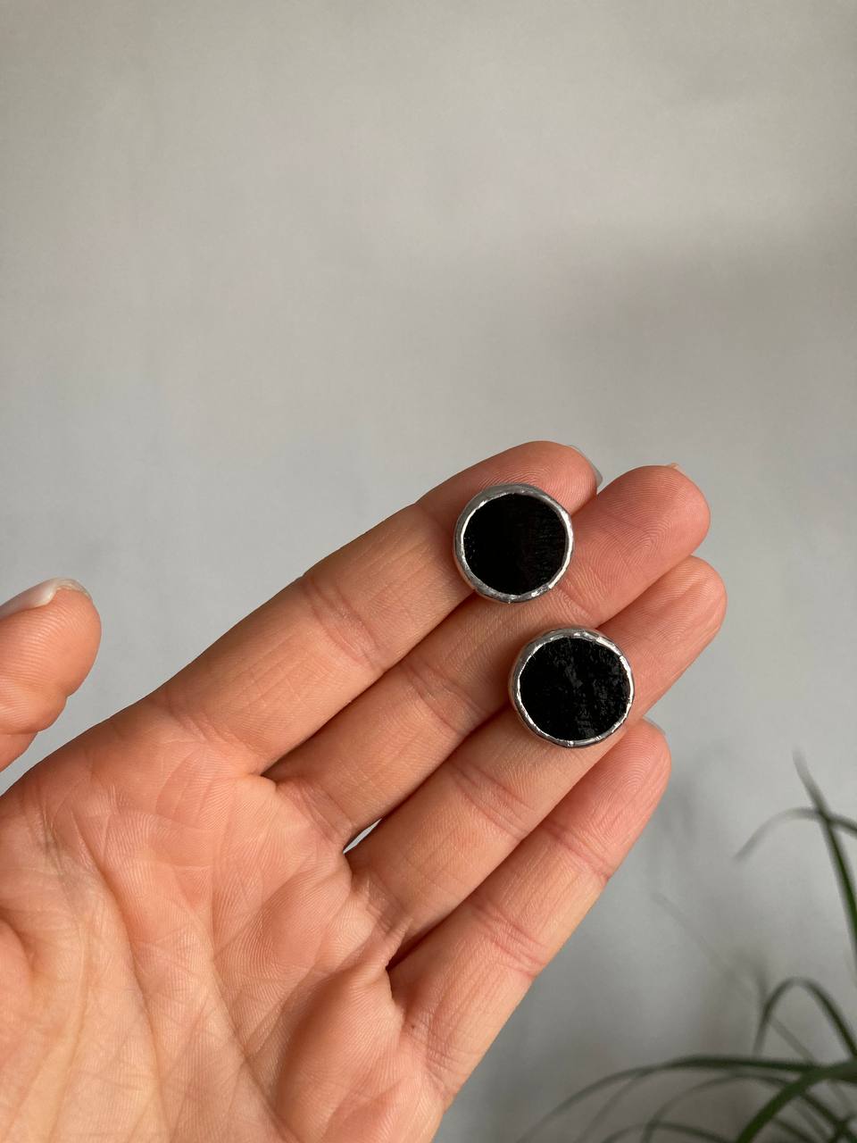 Black Stained Glass earrings, 18 mm, Round Circle stud earrings