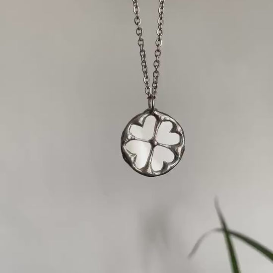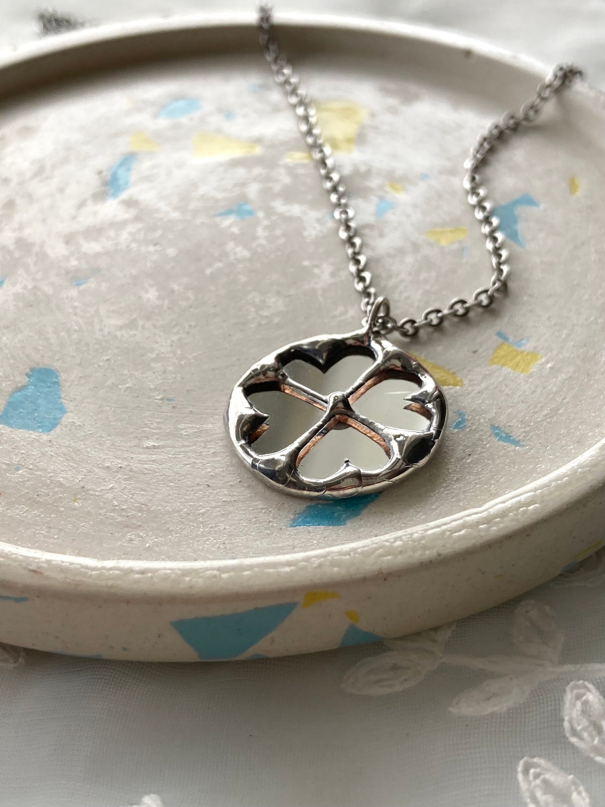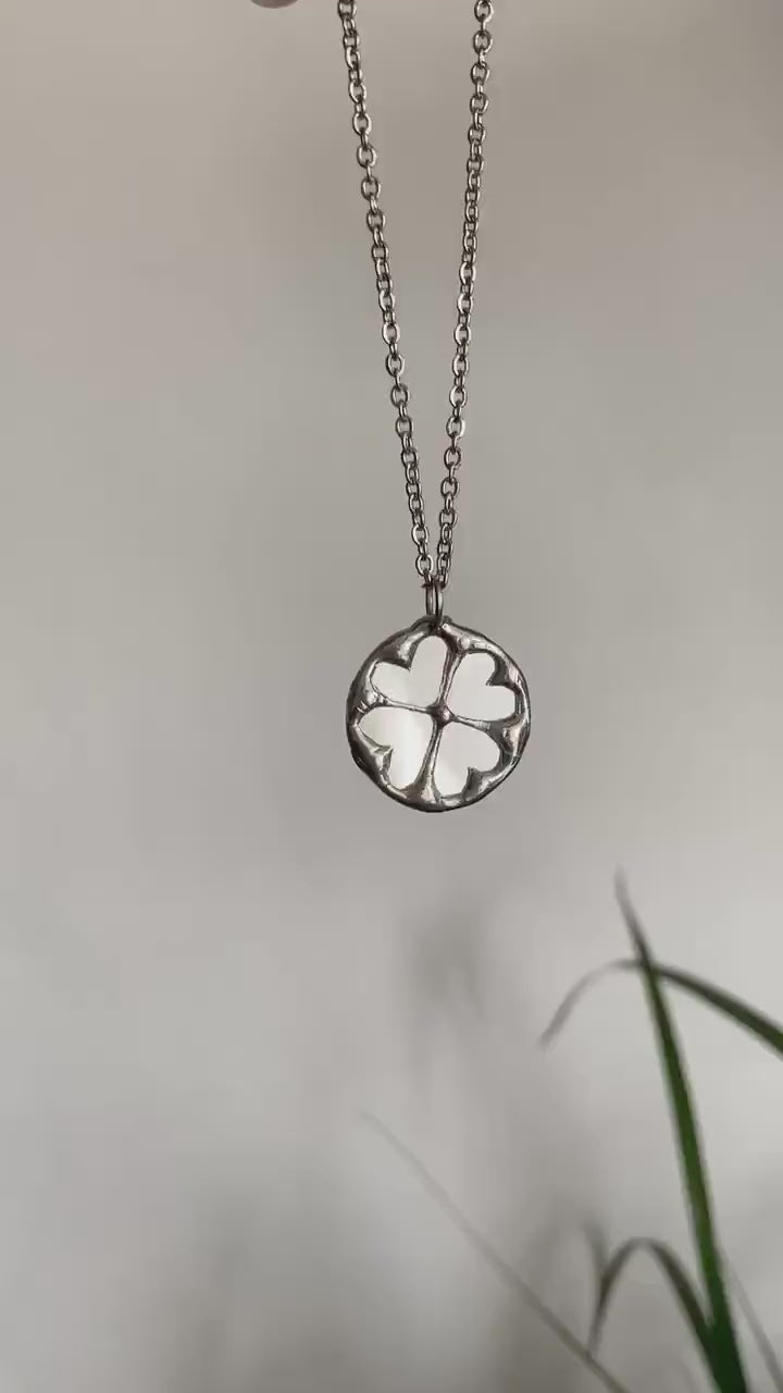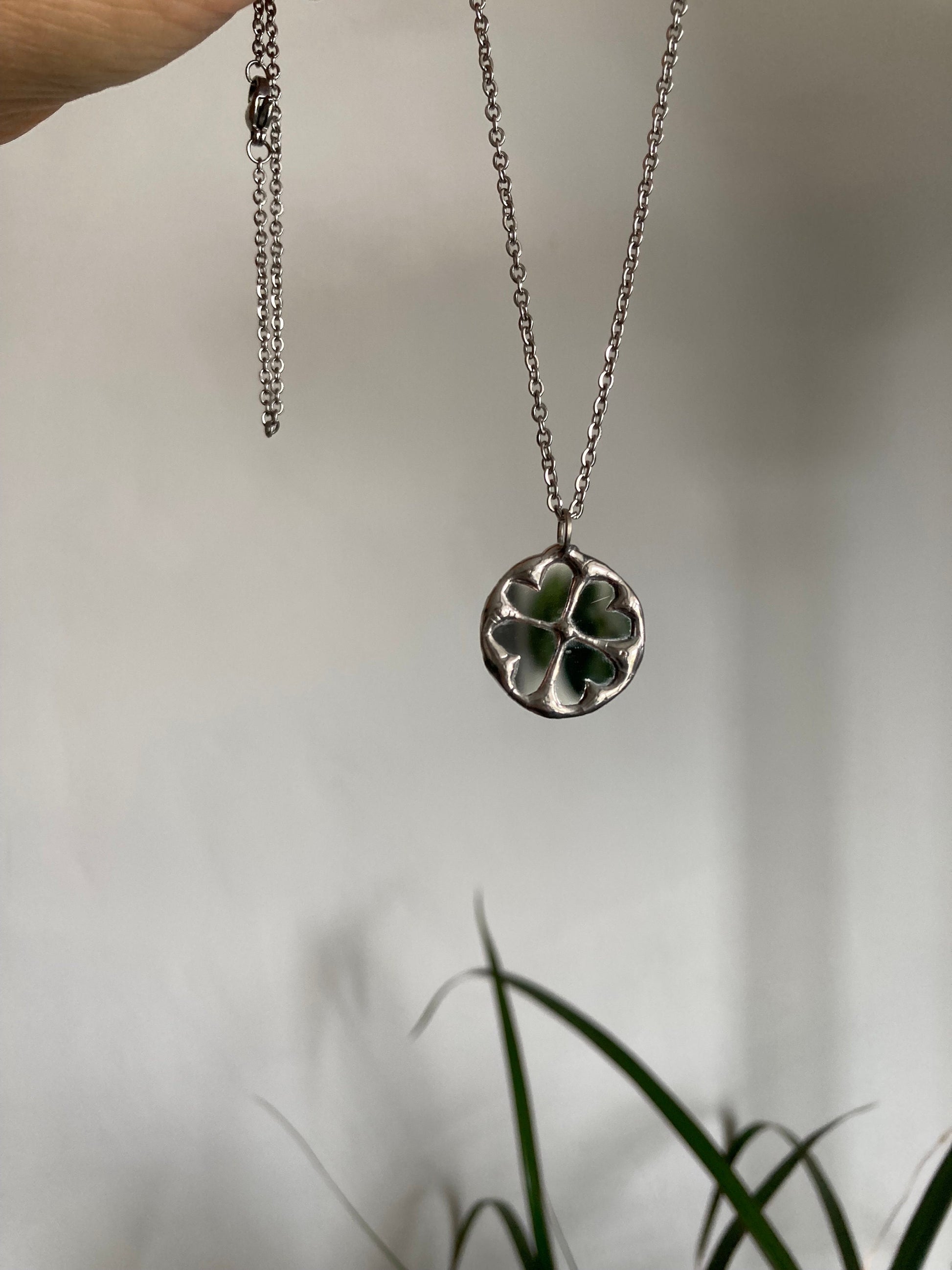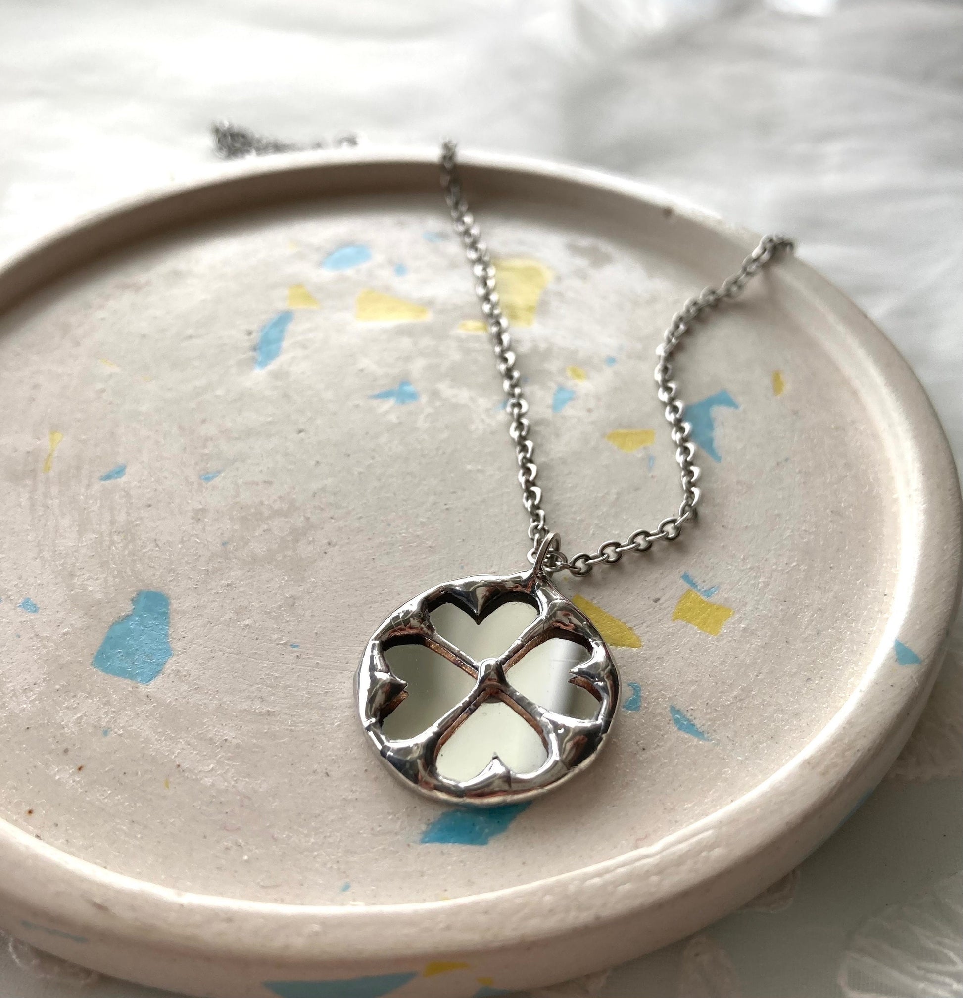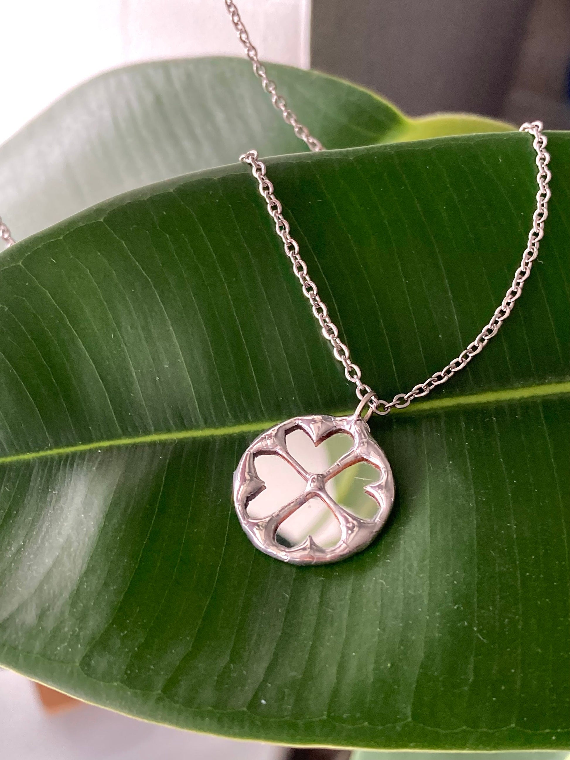Adorned with a four-leaf clover motif, this pendant carries the symbolism of luck and good fortune. This meaningful symbol is gracefully integrated into the circular form, evoking a sense of serenity and completeness.
