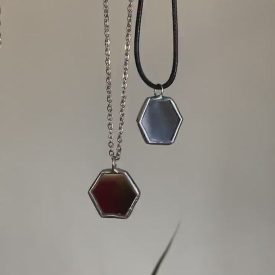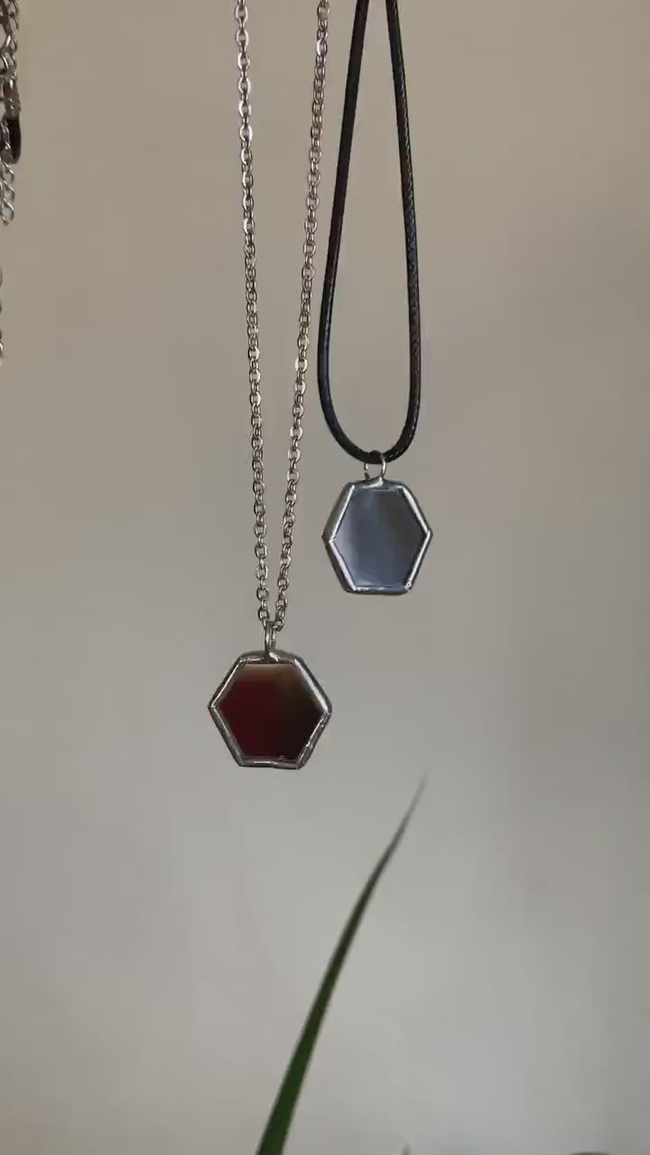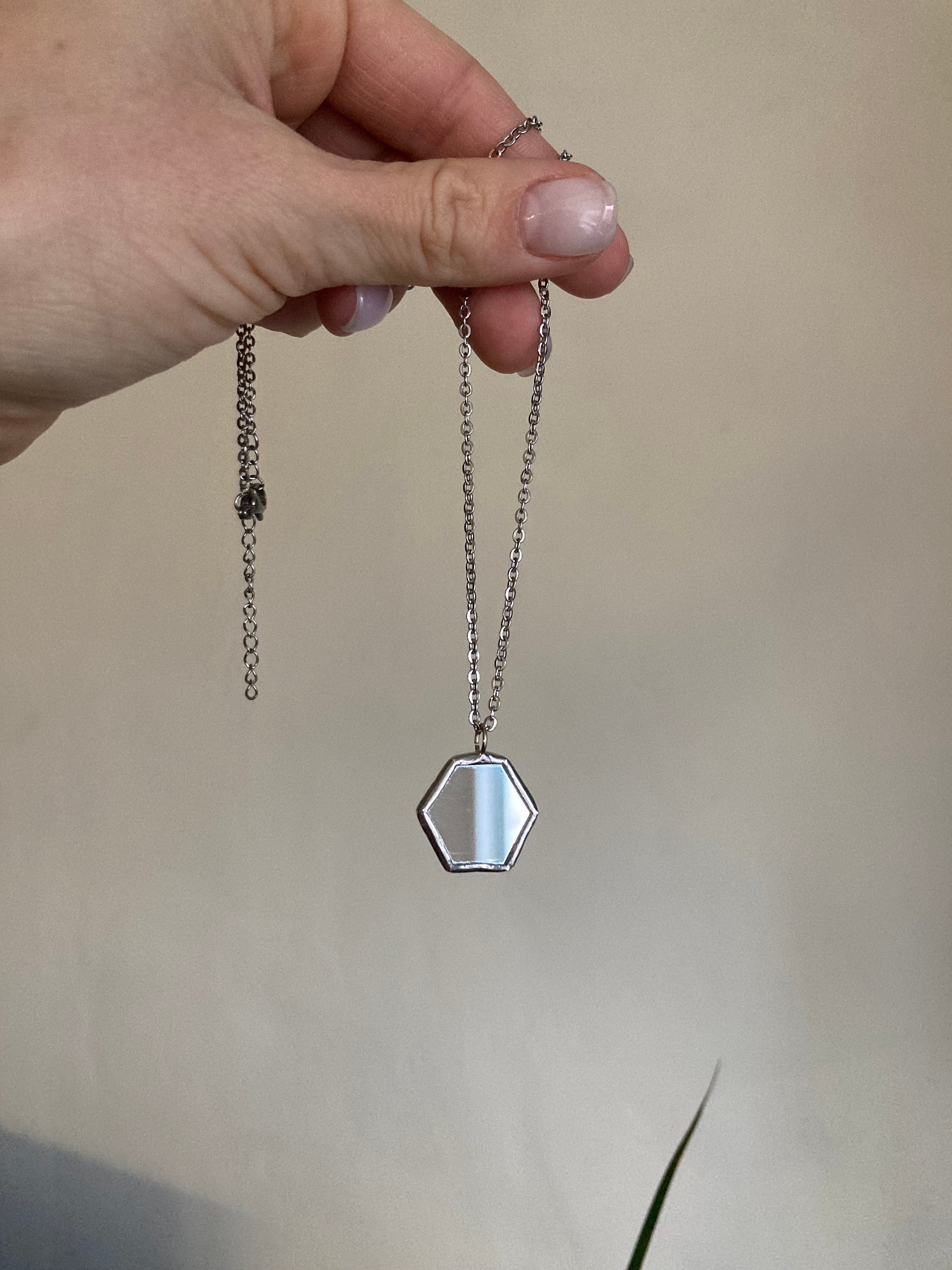 Hexagonal Mirror Pendant: Stained Glass Necklace, Looking Glass Jewelry