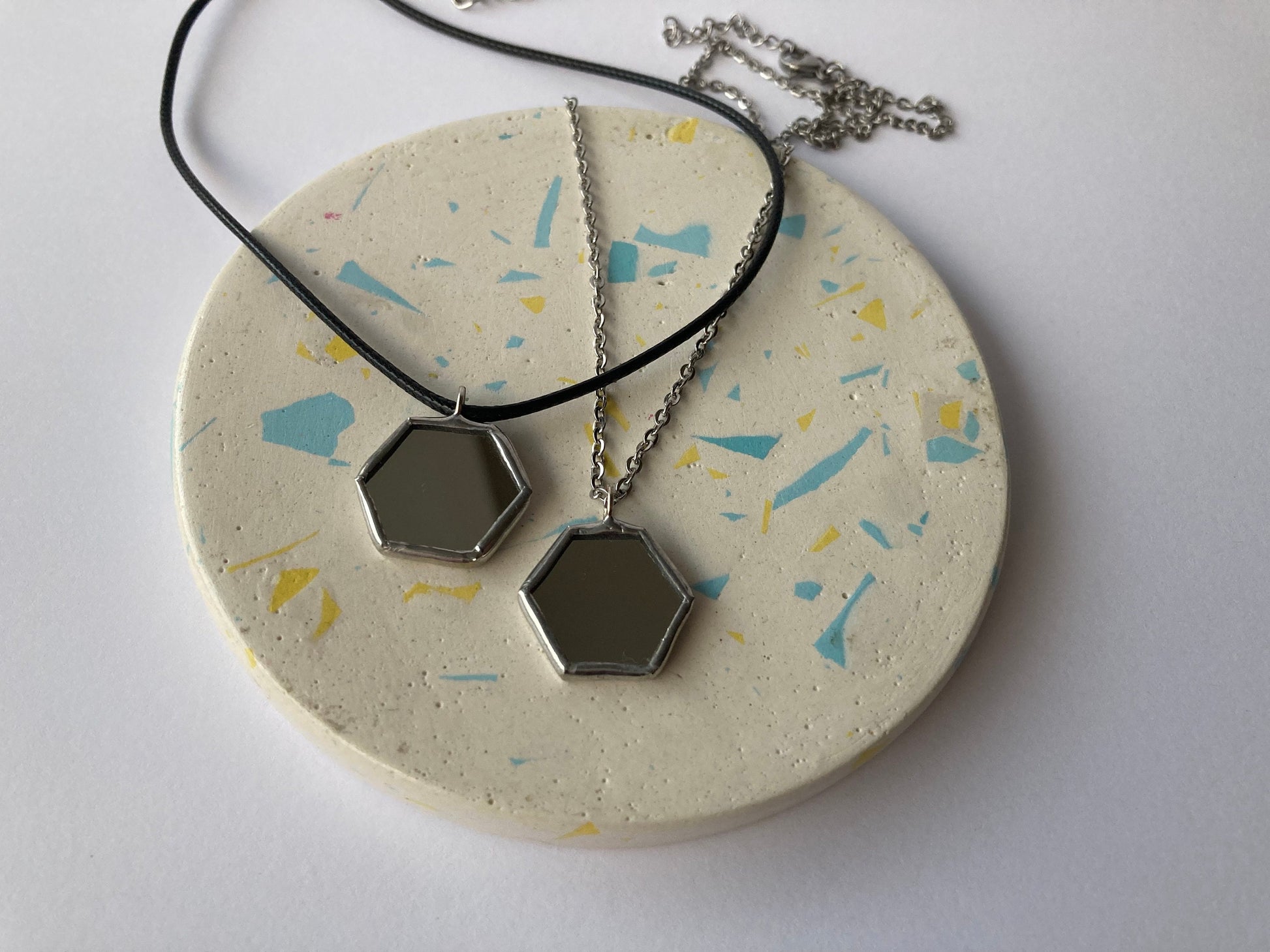 Mirror pendant can be complemented with a lightweight cord or an elegant chain, adding extra elegance and versatility to it. Wear it as a symbol of your own uniqueness and style, or gift it to a loved one as an expression of your love and affection. Hexagonal pendant will be a wonderful addition to your jewelry collection, providing you with unique charm and sophistication.