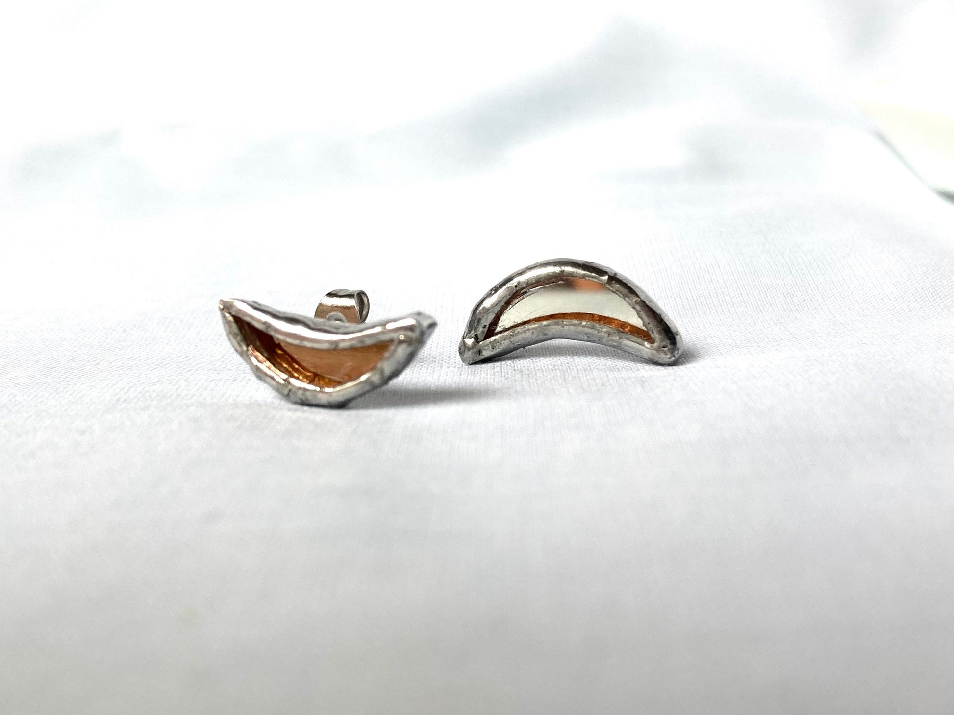 Moons tiny earrings, Stained glass earrings, Mirror moon earrings, Tiny stud earrings, Minimalist earrings, Protection jewelry