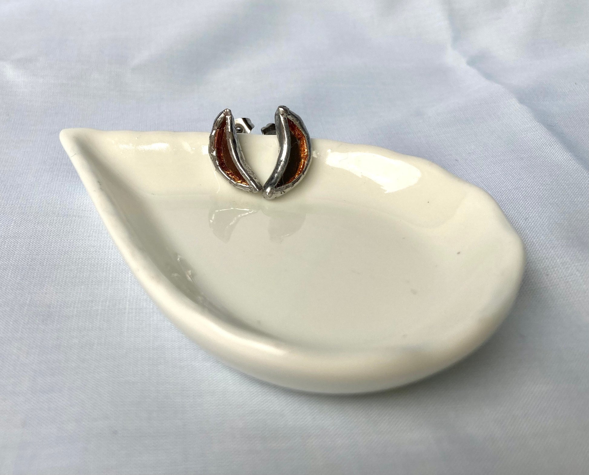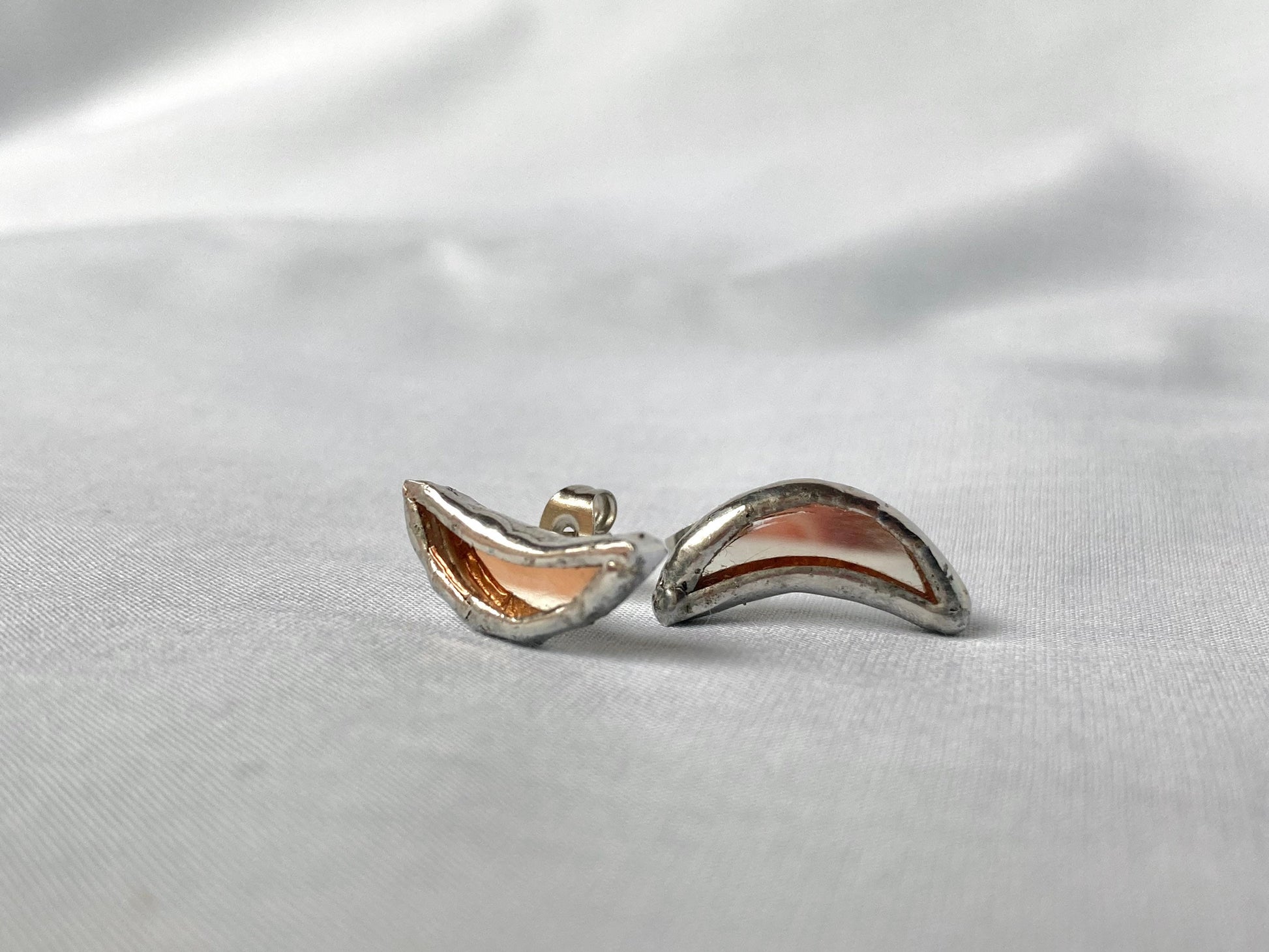 These little brazed earrings are made of mirror and metal.