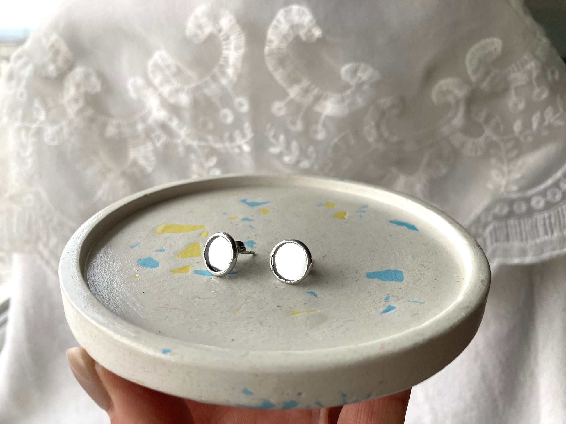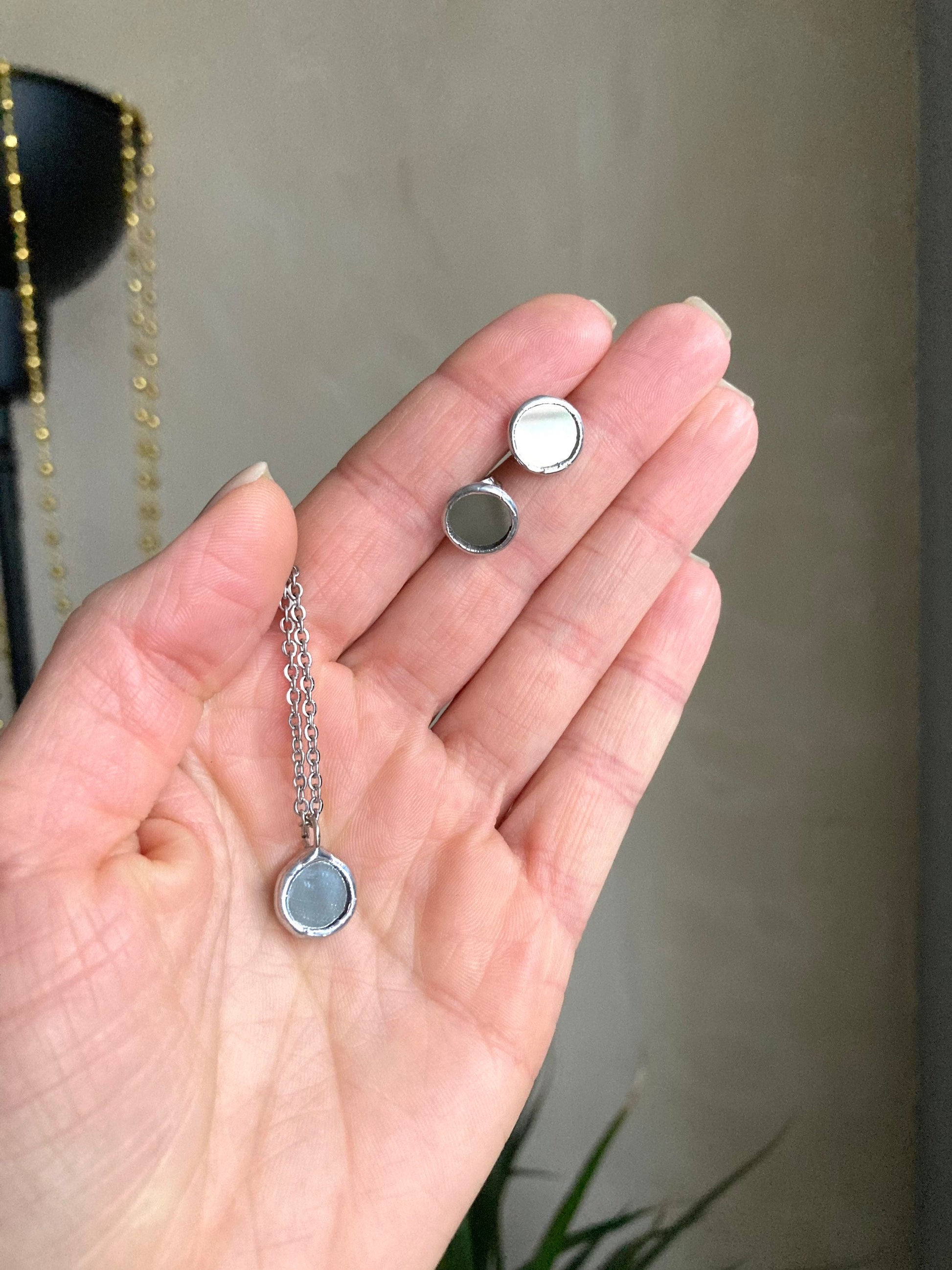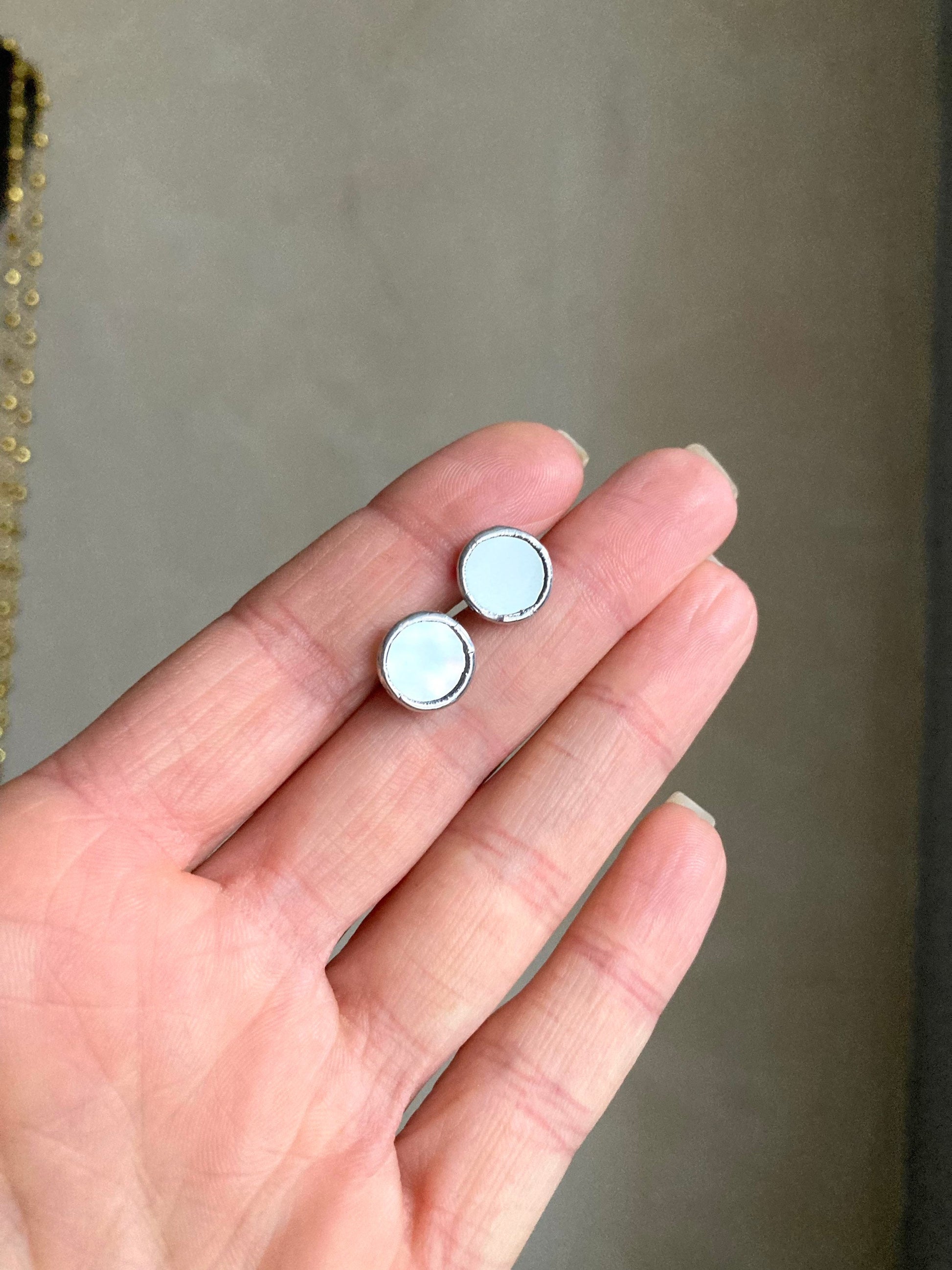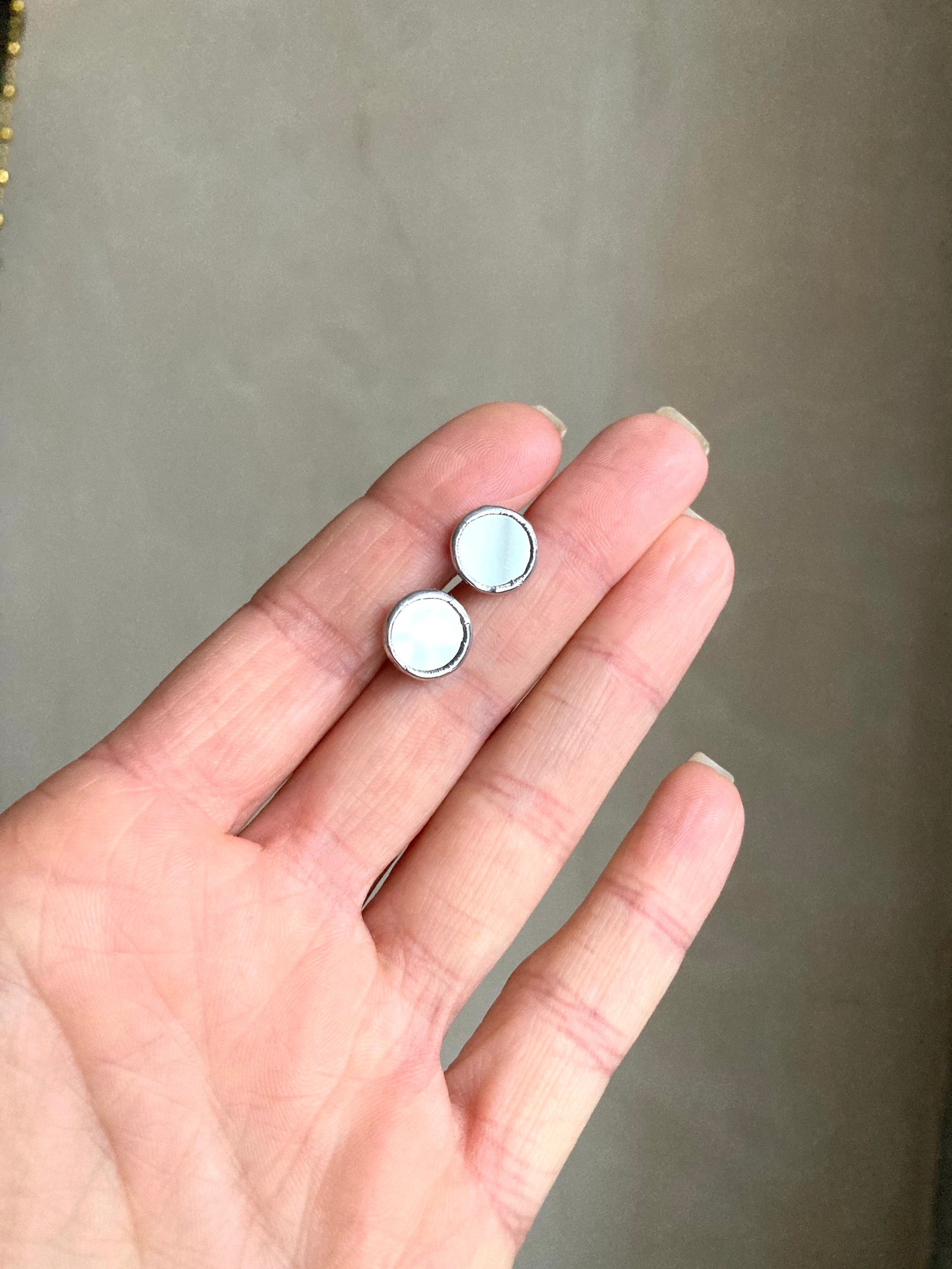 Small Mirror earrings, 10 mm, Stained glass studs earrings, Looking Glass Jewelry, Round mirror earrings, Stainless steel stud earrings