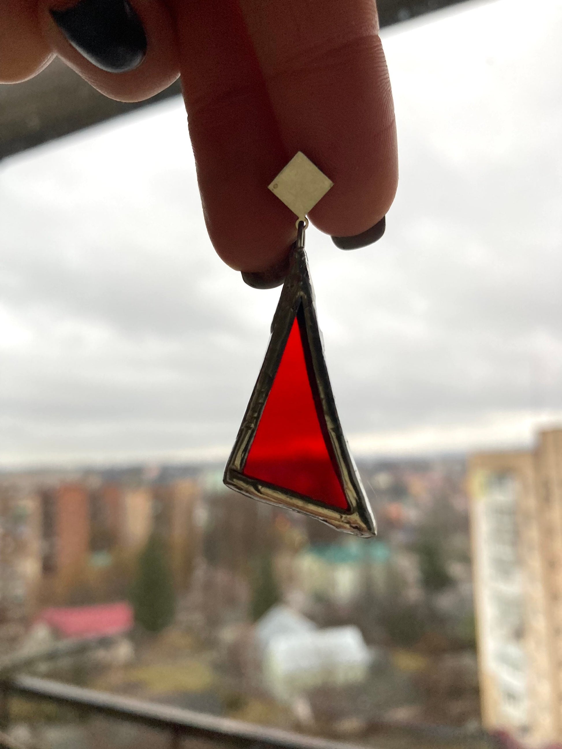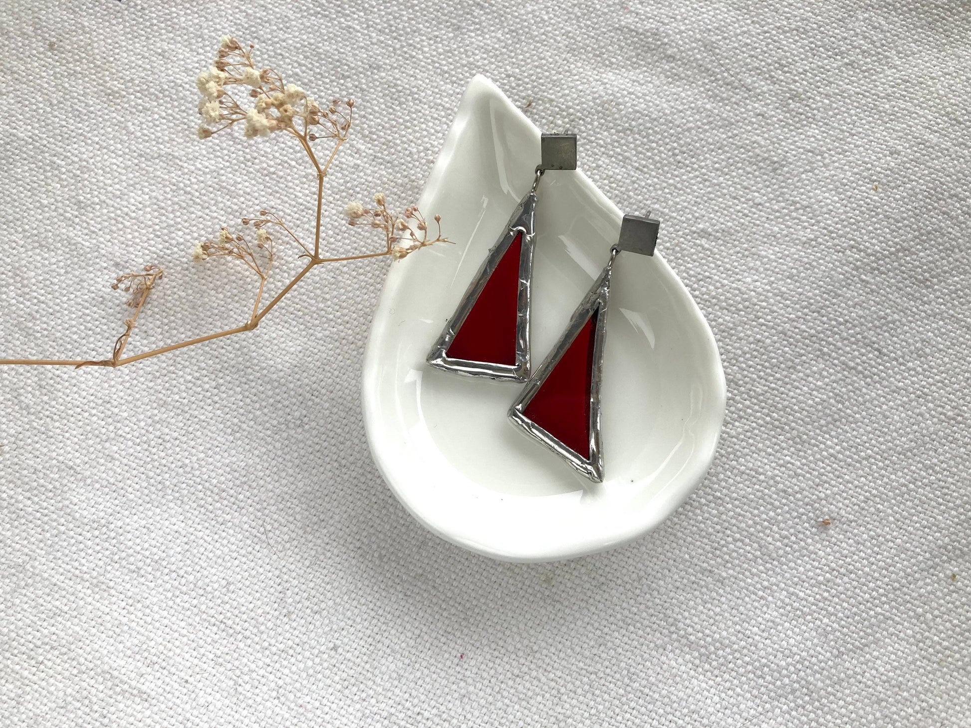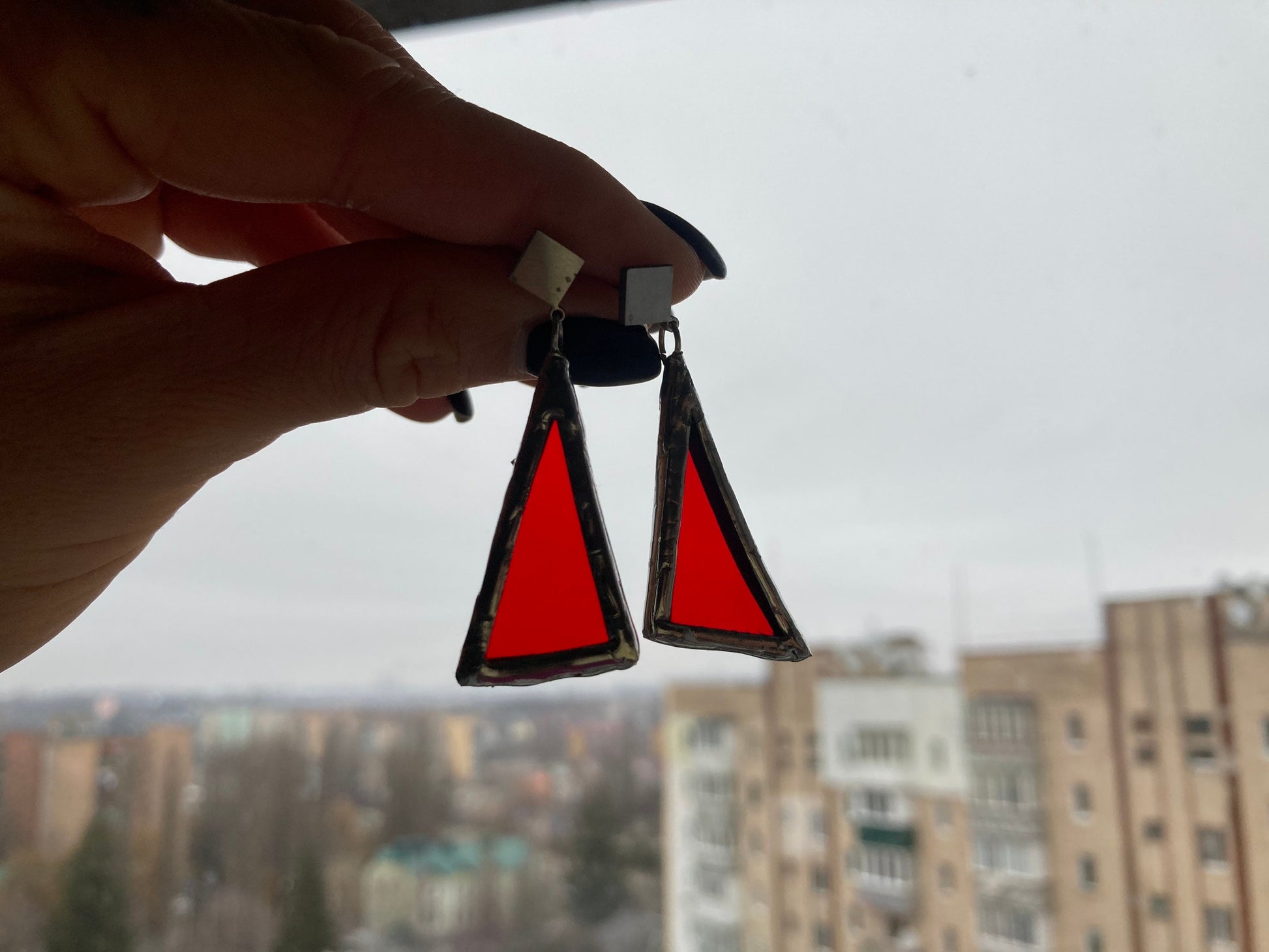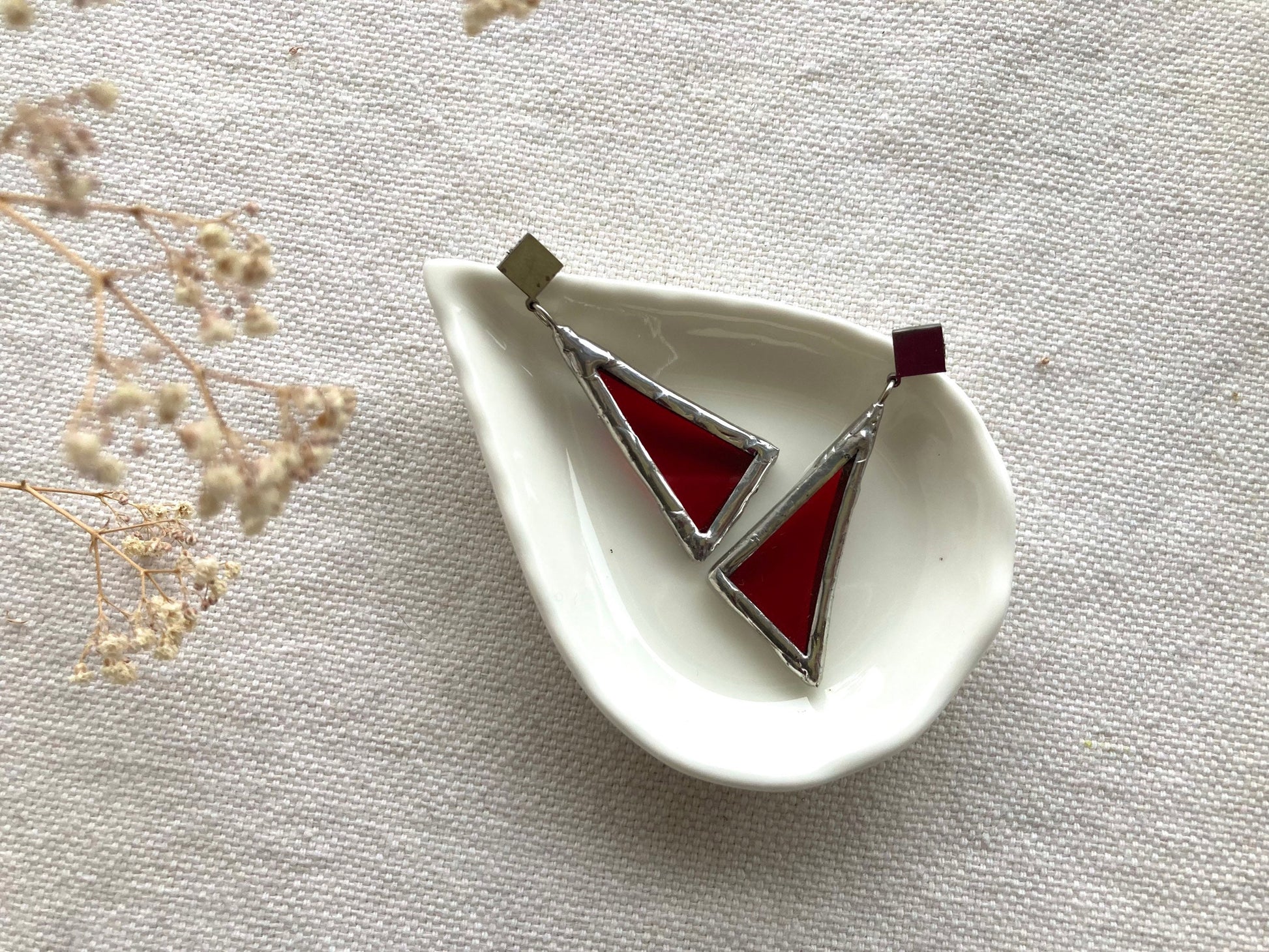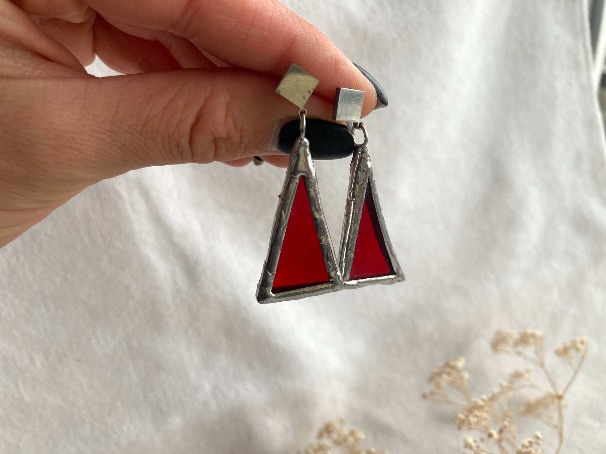 Stained glass earrings, Geometric Minimalist earrings, Red Triangle earrings, Mother’s Day Gift