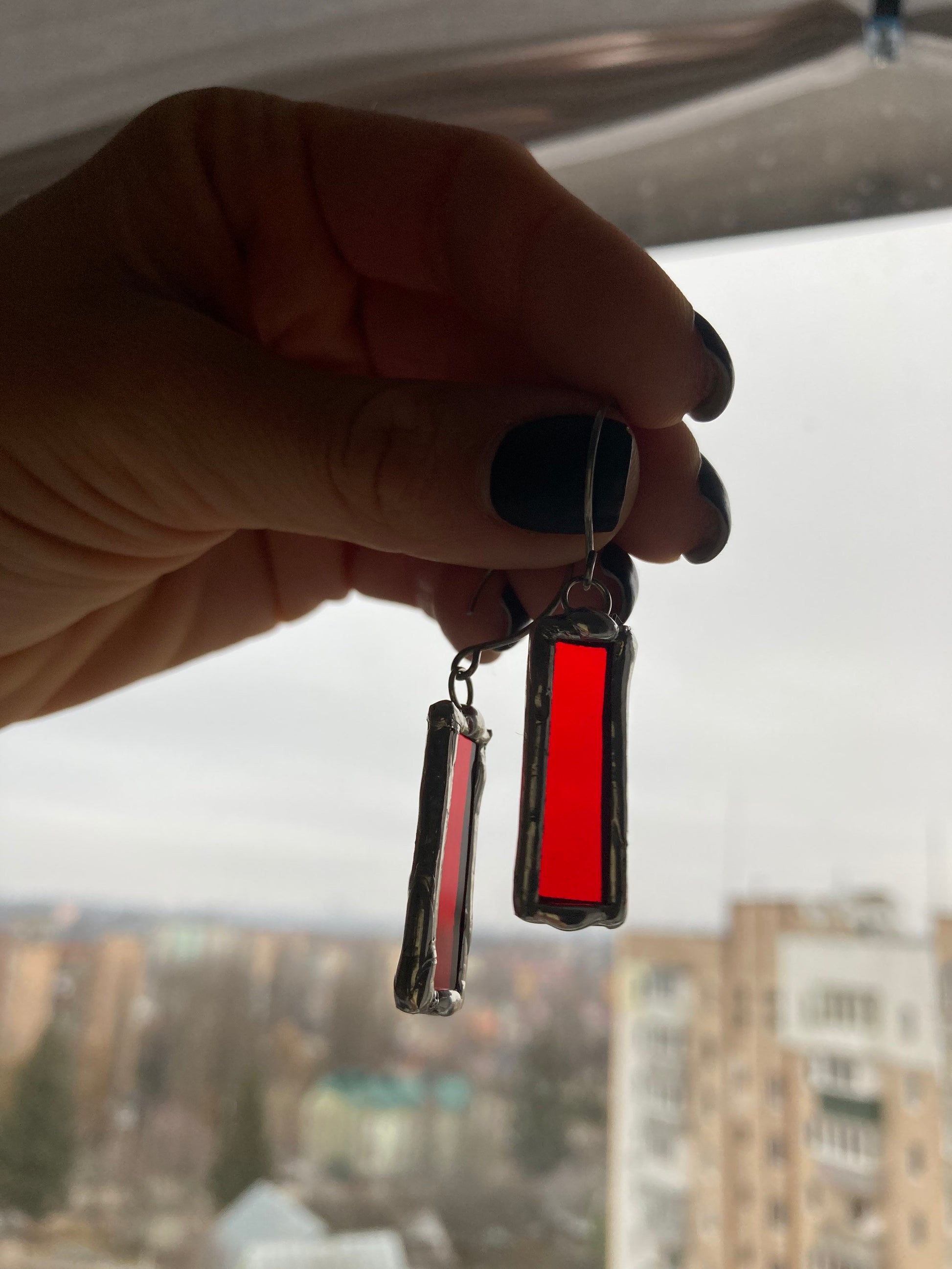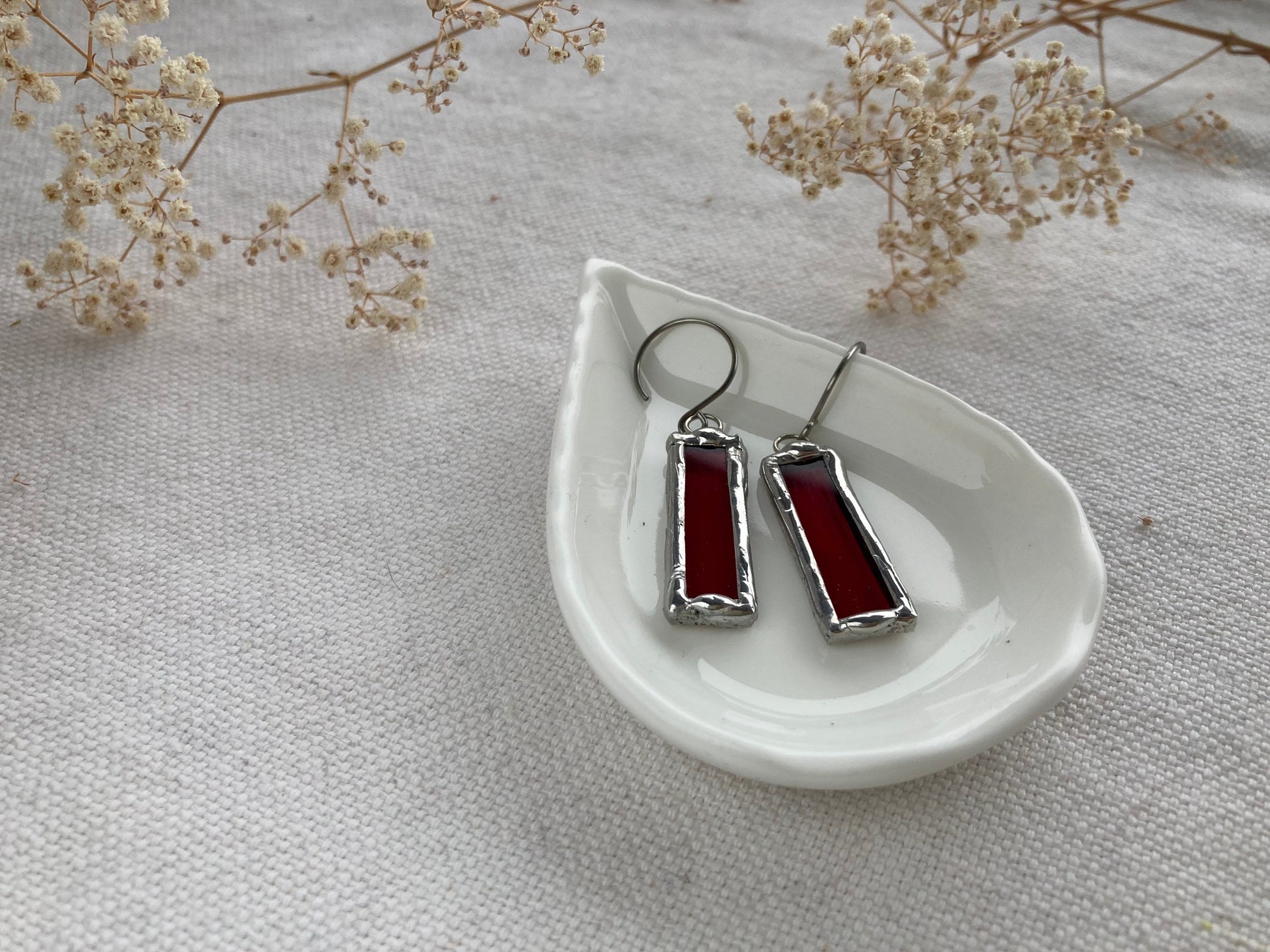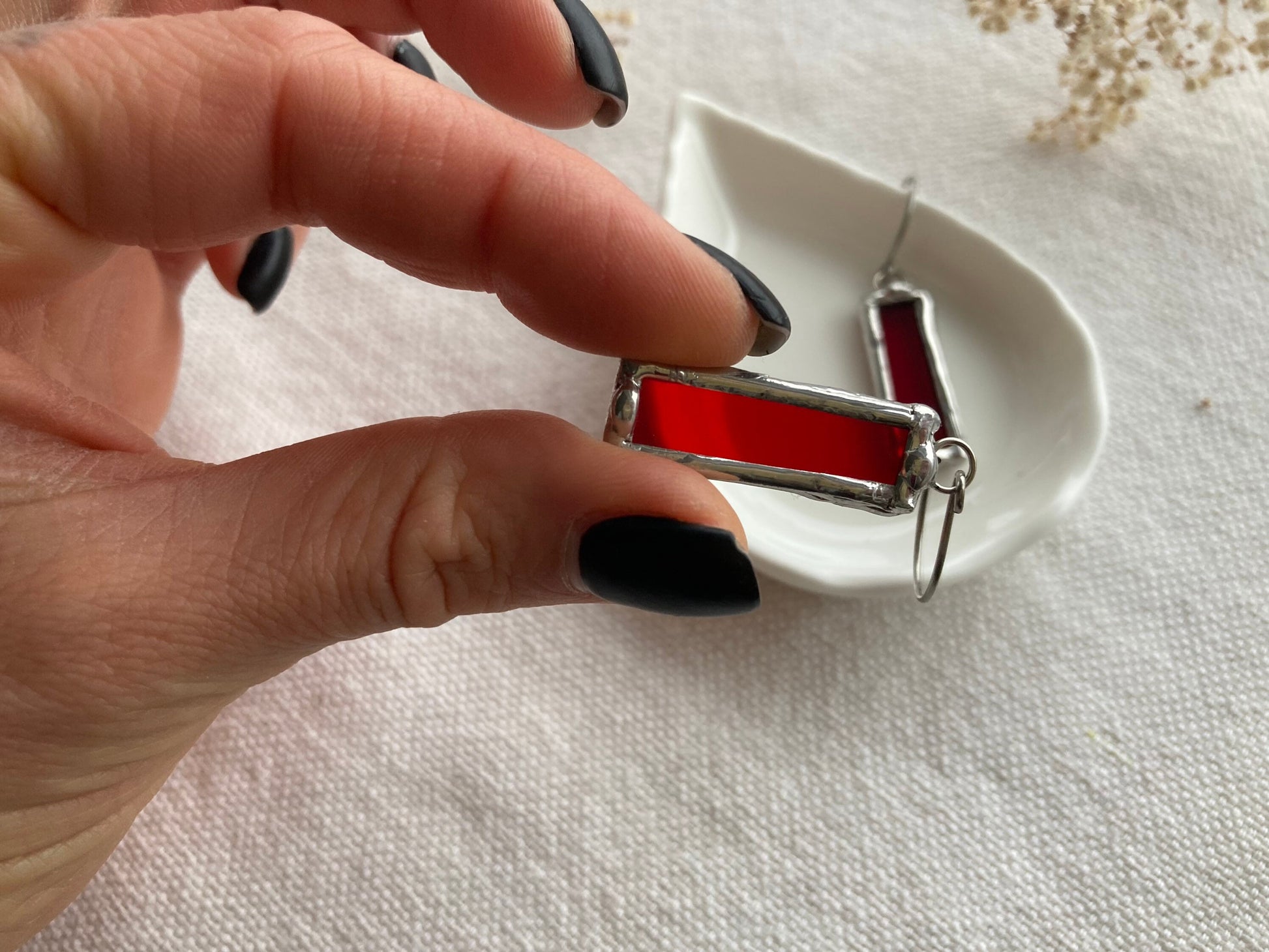 Stained glass earrings, Minimalist earrings, Rectangle earrings, Red jewelry, Mother’s Day Gift