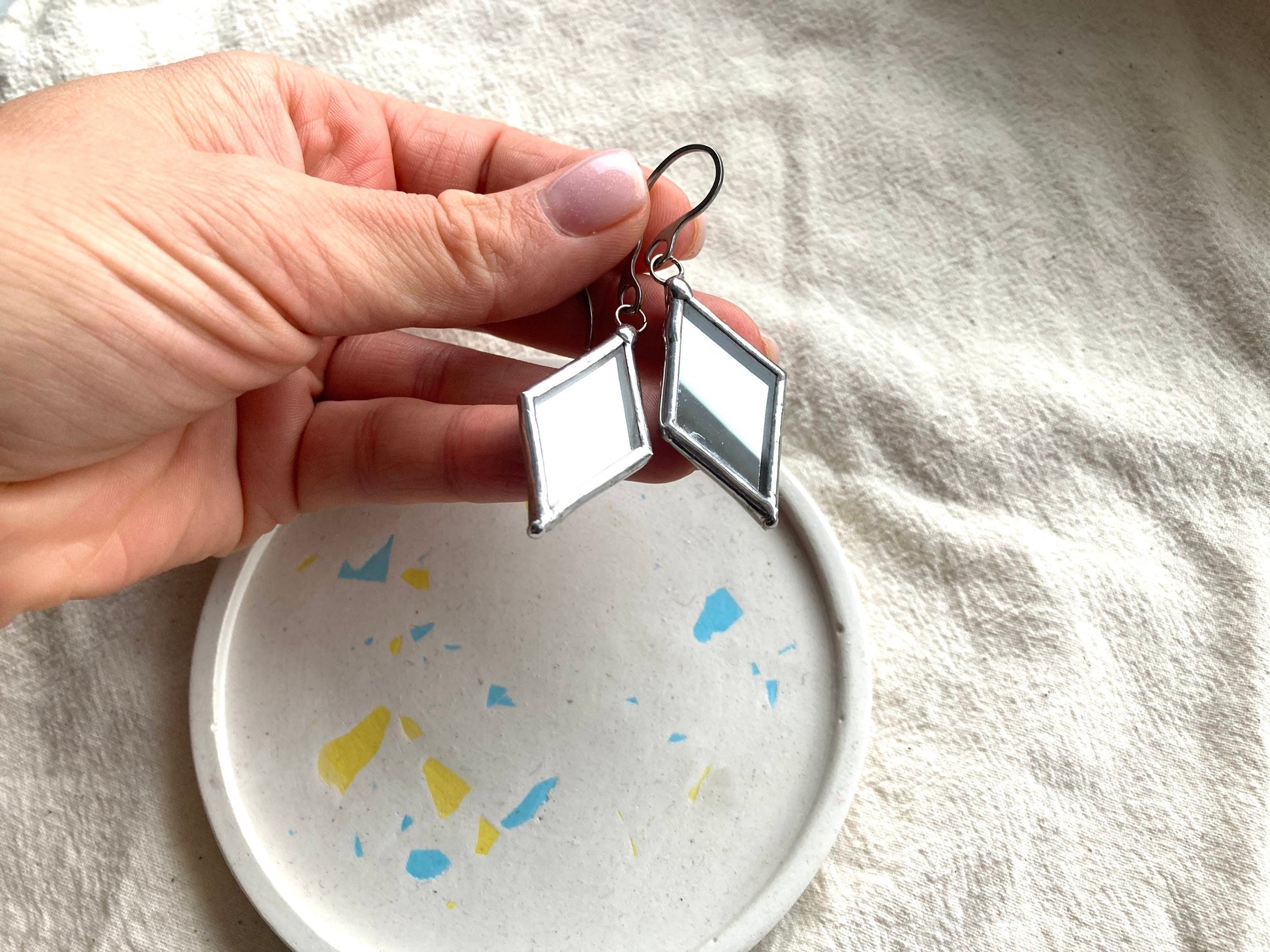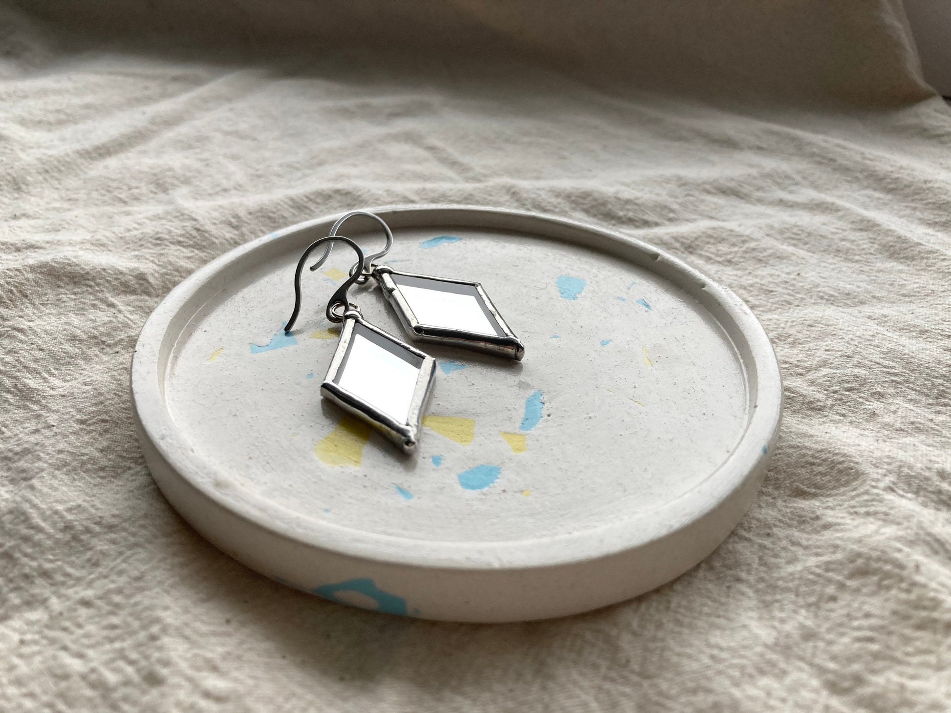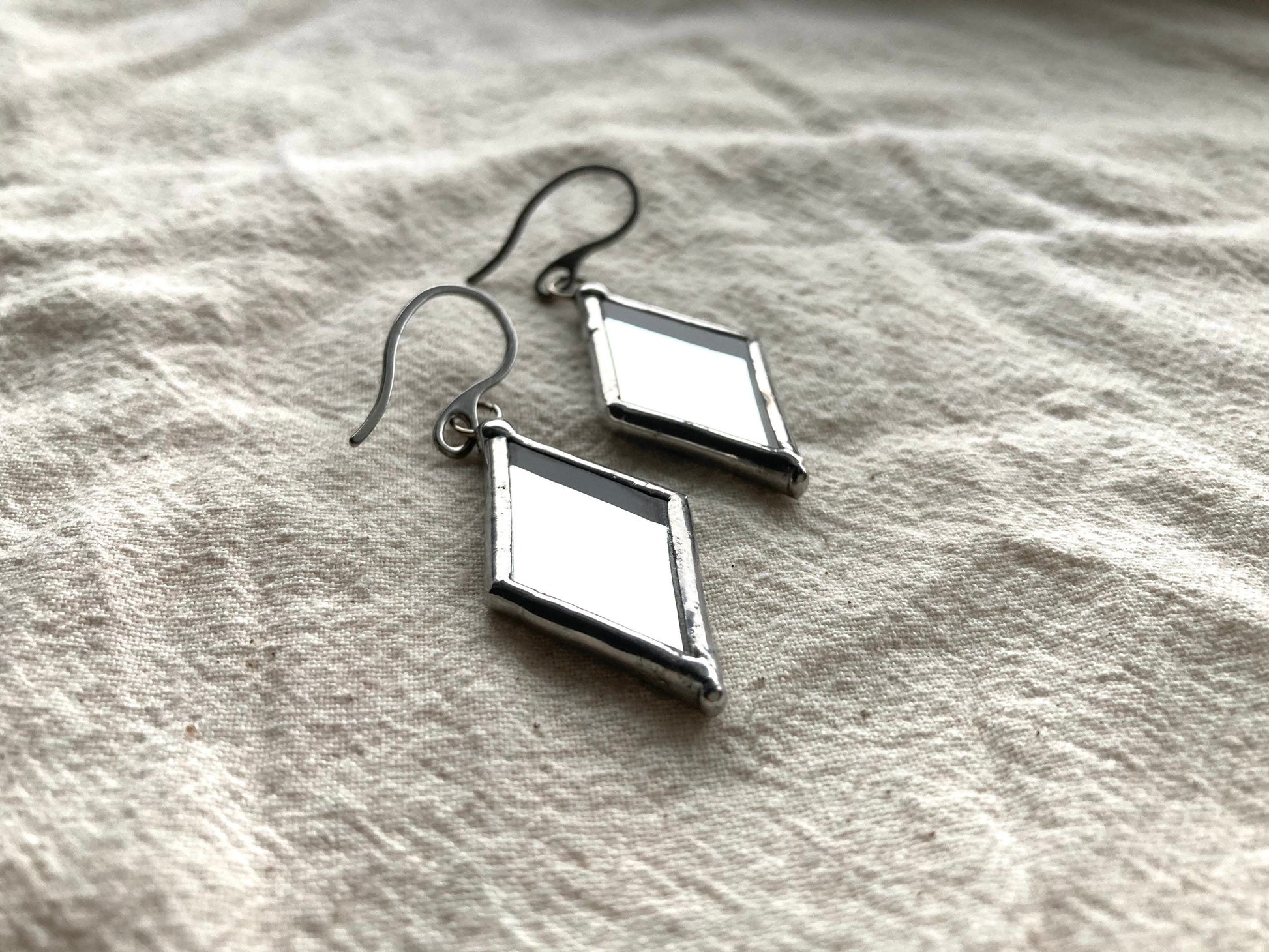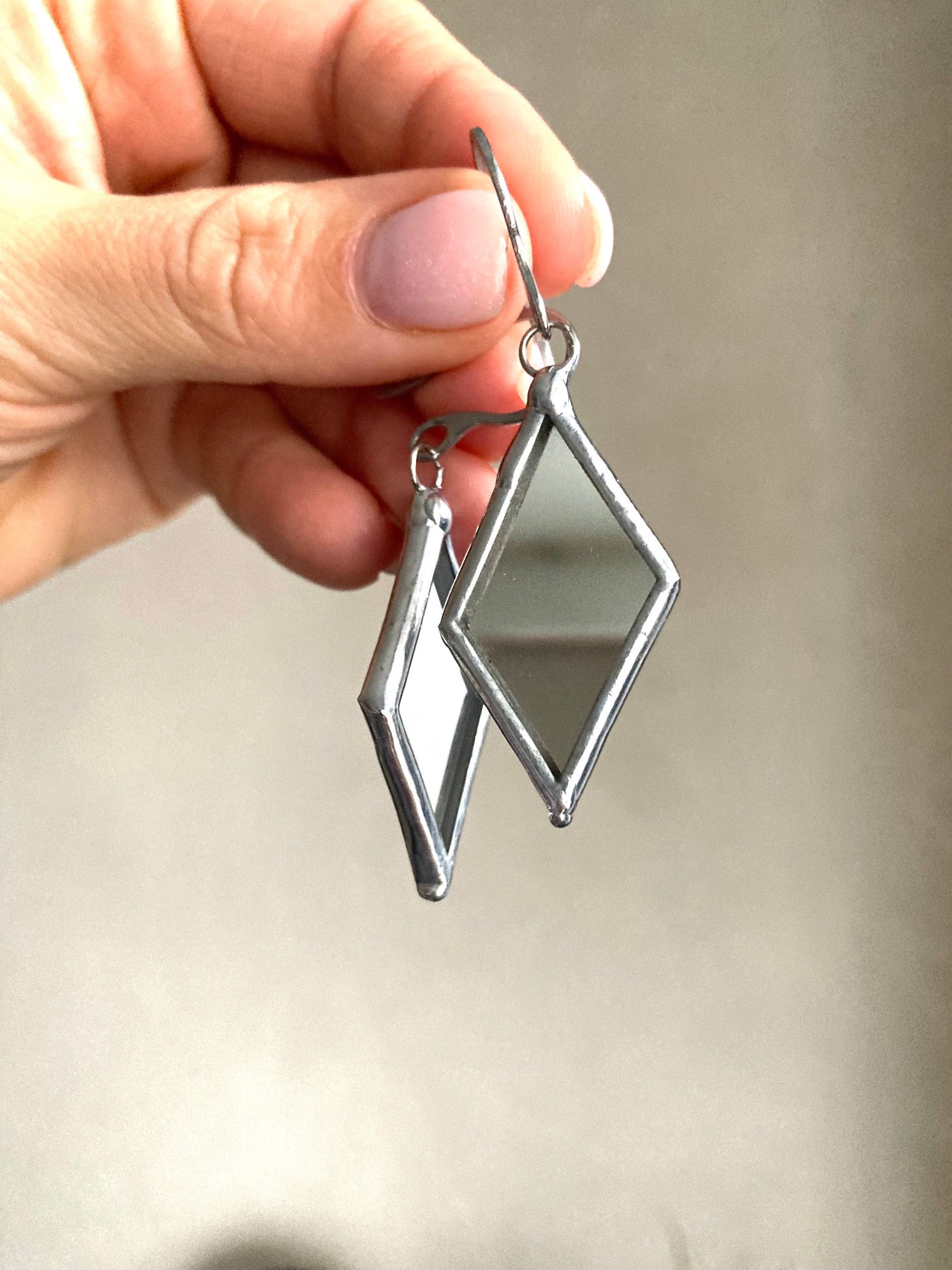 Stained glass earrings, Minimalist earrings, Rhombus gothic earrings, Mirror statement geometric stained glass design, Ukraine earrings