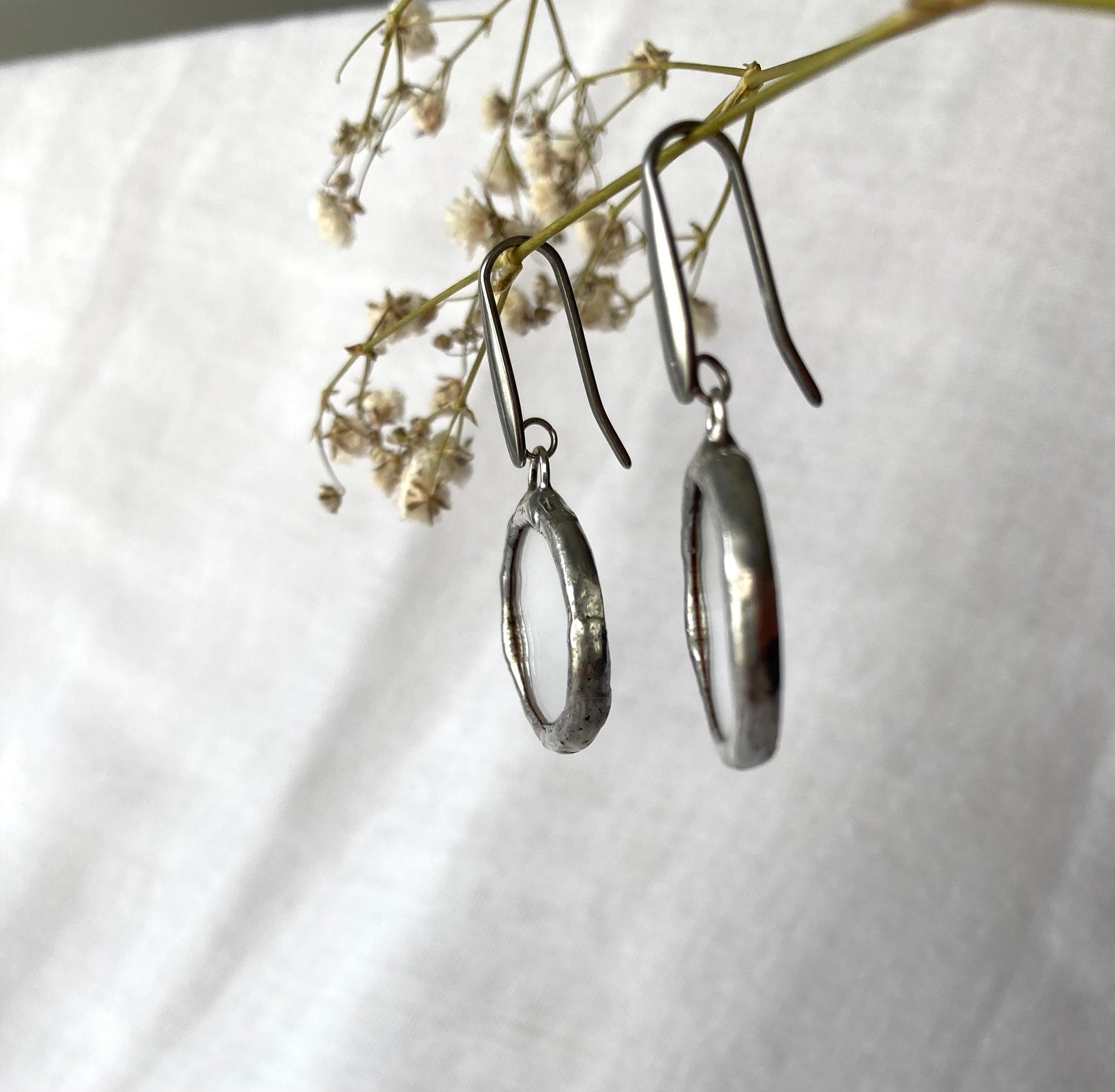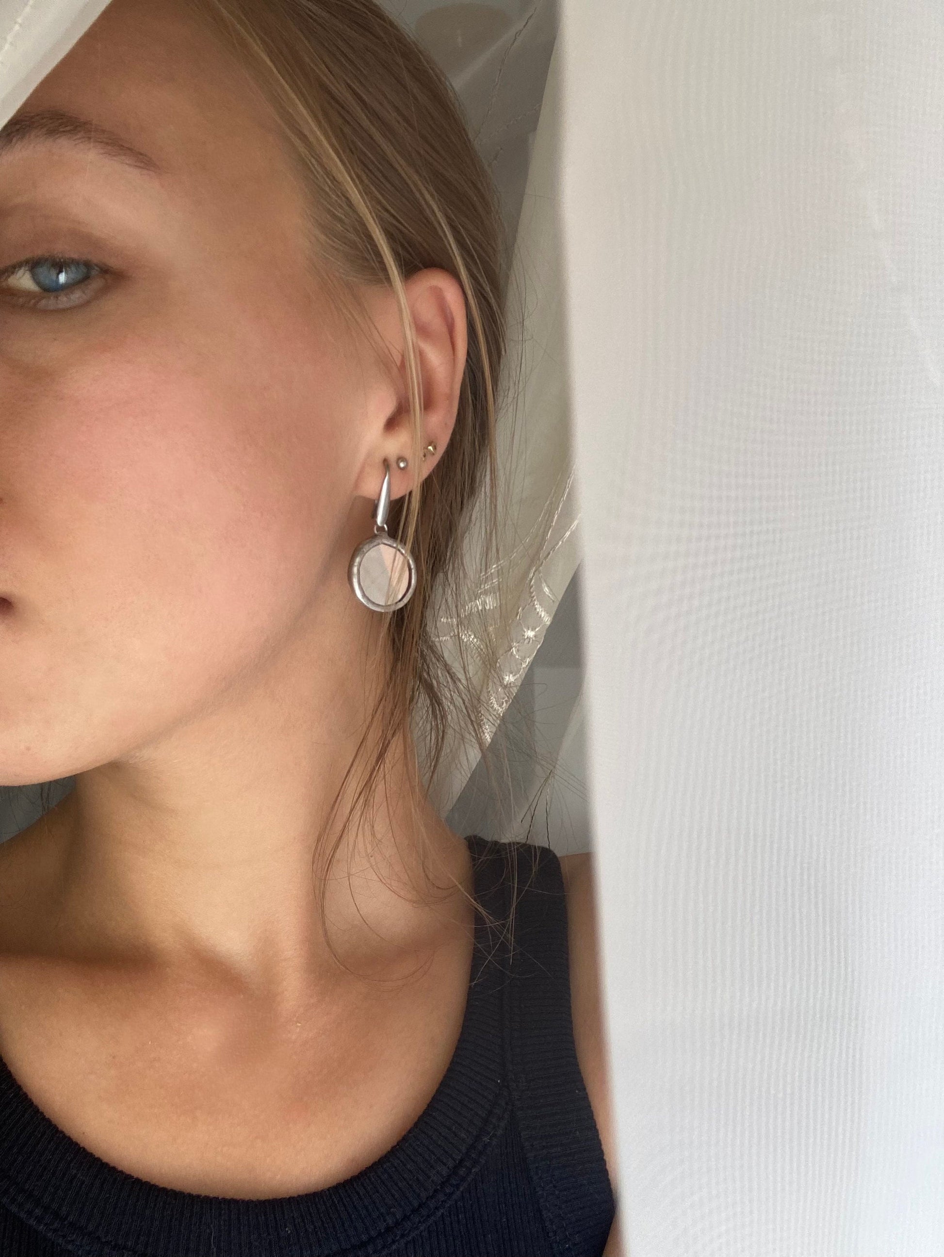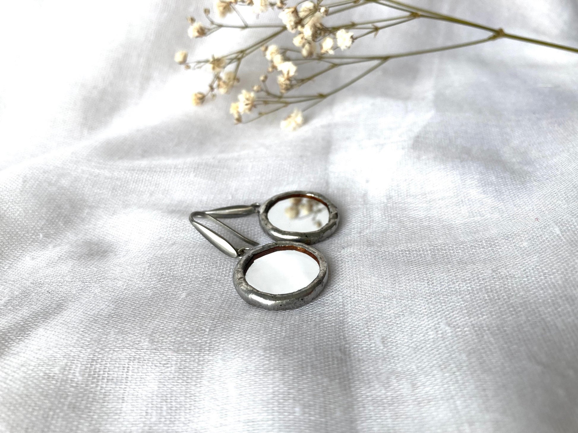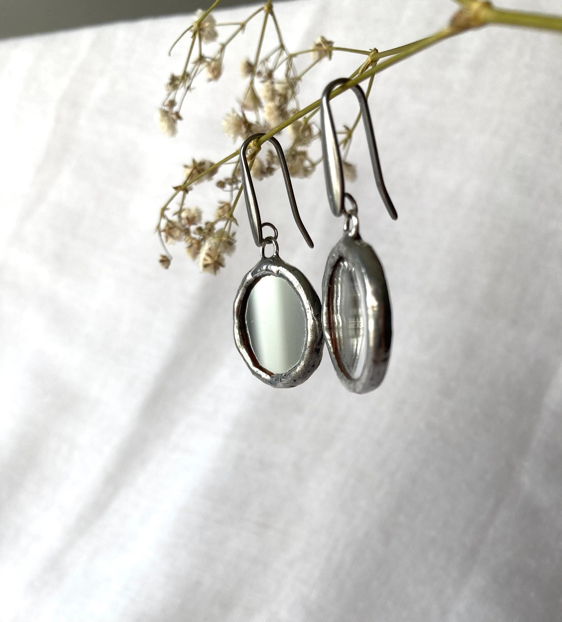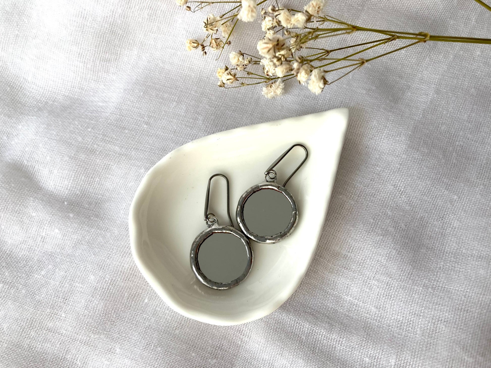 Stained glass earrings, Minimalist earrings, Round Circle Mirror Earrings, Dangle earrings